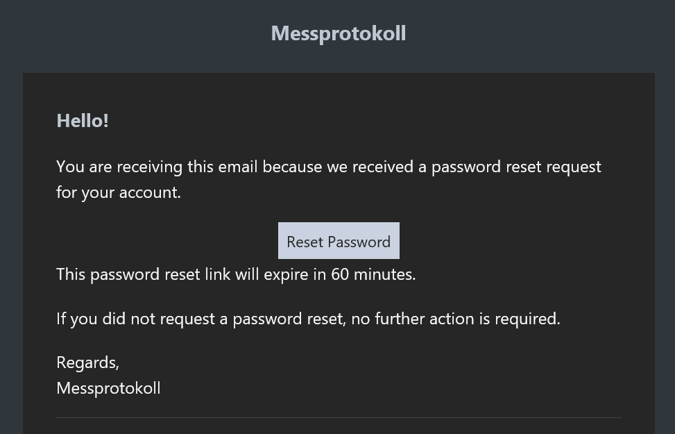 'Reset Password' link per E-Mail erhalten.