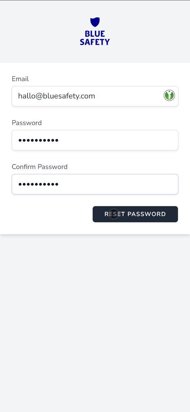 Sie können sich sofort mit ihrem neuen Passwort und der BLUE SAFETY-ID (BSID) einloggen.